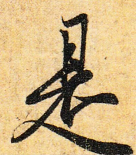 如《行穰帖》中的“當”字塊面感極強,而《書譜》中的“當”字注重單個筆畫的形狀,空間較為疏朗;《初月帖》中的“山”字筆畫之間的筆勢緊湊,中側鋒并用,筆毫鋪開形成塊面感,而《書譜》中的“山”字則受到定式的影響,加強了“三過折”筆法的裝飾性,塊面意識較弱。