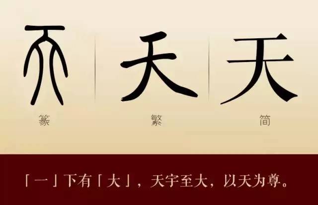 天字“二”下為人,表示天以人為本。一個天字,人居中頂天,寓意以人為中心,頂天立地。人是萬物之尺度。天是以人為本的,日夜的交替,使人既勞作,又能休息,四季的轉換讓人感受到春花秋月,夏暖冬涼。