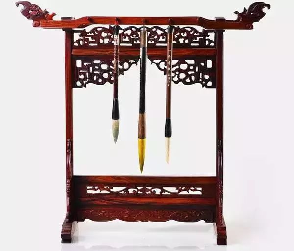 筆掛是用竹木制成的架子,兩邊有柱子,高一尺余;上面有橫木,寬亦一尺有余,可以倒懸筆管,做晾筆用。筆掛也有制成圓柱形的,圓頂,筆掛在圓頂周邊上,很方便。
