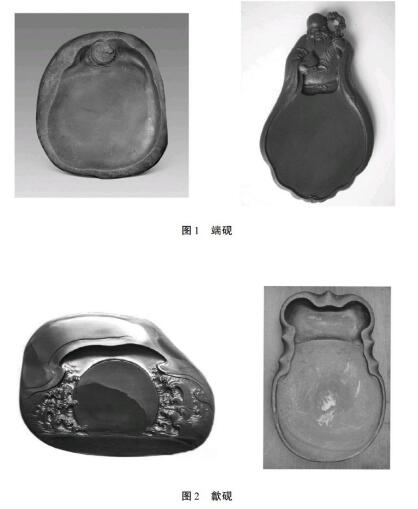 書法工具硯,也叫硯臺,是研墨(磨墨)、盛墨、舔筆的工具。據(jù)北宋蘇易簡《文房四譜》①中的敘述,魯國孔子廟中有一方孔子使用過的石硯。這證明在春秋戰(zhàn)國時就有硯臺。漢代時,硯臺的使用已十分普遍,有蚌殼硯、陶硯、漆硯等。目前我國發(fā)現(xiàn)最早的一方硯臺是北魏的正方形石硯。到唐代,我國制硯的工藝和規(guī)模都有很大發(fā)展,出現(xiàn)了端硯(見圖1)、歙硯(見圖2)、魯硯、祧硯四大名硯。其中以出產(chǎn)于廣東高要(古名端州)的端硯為最好,有著極高的藝術(shù)價值和收藏價值。
