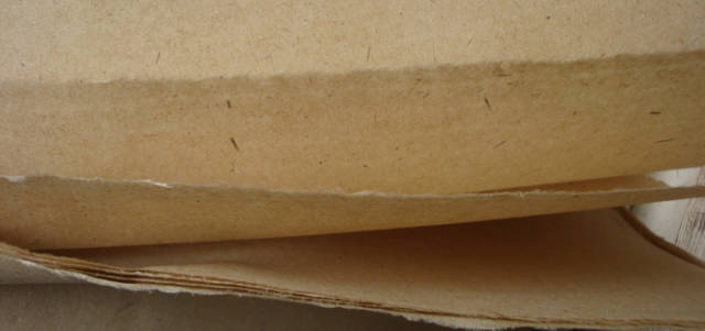 1、紙質外觀來看,手工毛邊紙,質地棉軟,厚實而細膩,顏色為淺黃色,兩面手感一樣;而機制毛邊紙,質地比手工的薄而脆薄些,一面比較光滑,一面略帶粗糙,價格當然也比手工毛邊紙便宜。