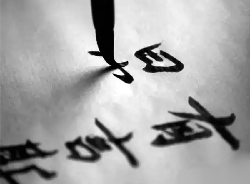 墨的燥與潤,濃與枯的變化與行筆的速度有著直接關系,行筆速度相對慢時,筆在紙上有瞬間的停滯,墨流多,故點畫能濃,反之則枯。書寫的速度快,墨則宜稍淡,速度慢,墨則宜稍濃。如果墨已調好,書寫過程中運筆速度又變化不定,那么可以通過控制筆毫的含量來掌握墨跡。快書時多蘸墨,慢書時少蘸墨。用墨的核心技巧是“紙墨相發”,用墨的關鍵技巧是施墨,由于水墨落到紙上有滲化的特性,所以,施墨之時,必須要把握準分寸,否則失控就會敗墨,失去墨韻,其規律是:“飽筆滲化快,渴筆滲化慢。”為使墨的控制準確而合度,如何把握筆速就是關鍵環節了。其要領是:“飽筆須快,渴筆宜慢。”墨色的變化須任自然,切忌寫一字蘸一次墨,頻頻停筆蘸墨必然擾亂連續書寫的節奏,不能產生墨韻變化,通幅作品要注意到上下、左右的關系。通過對比表現出墨色的自然變化。