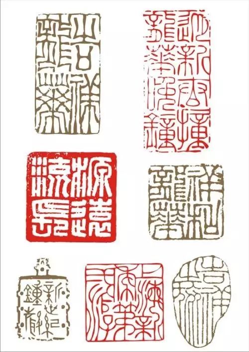 兩類形狀結(jié)構(gòu)的不同的印文,在組合布排時(shí),因各自的特點(diǎn),可作不同的利用,產(chǎn)生不同的效果。