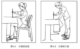 在校學(xué)生學(xué)習(xí)毛筆書法的書寫姿勢主要還是坐、立兩種。前者主要在書寫字徑不大的字和幅面不大的作品時采用,后者一般用于書寫字徑較大的字和大幅作品時采用。