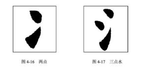 順三點,是在相向點中間插入一個斜點,分布原理與三點水相同,注意下邊沿要整齊。