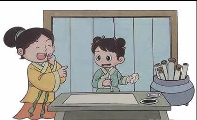 王羲之小時候寫字時專心致志。有一次,他在書房中聚精會神地寫字,竟然忘記了吃飯。母親只好讓書童給他把飯送過去,有饅頭,還有王羲之最愛吃的蒜泥。當母親來書房看小羲之的時候,一進書房便笑得前仰后合。原來王羲之邊吃飯邊看字帖,競將墨汁當成蒜泥蘸著吃了,弄得滿嘴烏黑。直到聽到母親大笑時,他才恍然大悟。