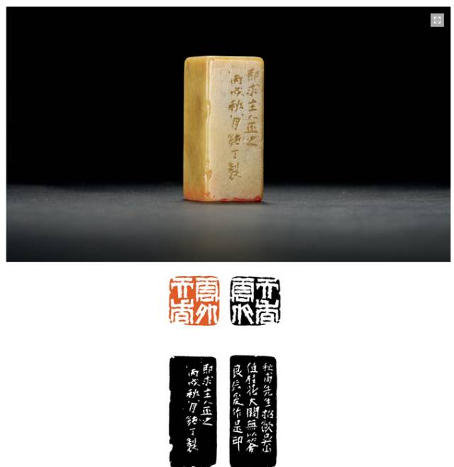丁敬在篆刻藝術上的成就,如汪啟淑《續(xù)印人傳》所說:“丁敬篆刻”古拗峭析,直追秦漢。”魏錫曾《昊讓之印譜跋》指出其刀法“濫筋”于“朱簡碎刀”。乃“熔鑄秦漢元明,古今一人,然無意自別于皖”??自瓢讓φ闩膳d起有過如下評論:當徽派盛行之際,有西泠丁敬突起,乃奪印壇盟主之席,開千五百年印學之奇秘,也稱浙派之初祖也。