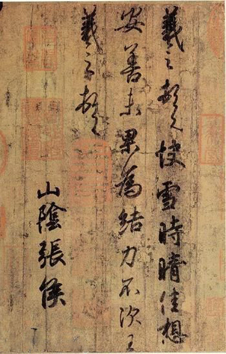 他是“宋四書法家”(蘇、米、黃、蔡)之一,又首屈一指,擅篆、隸、楷、行、草等書體,長于臨摹古人書法,達到亂真程度。其書體瀟散奔放,又嚴于法度?!端问?middot;文苑傳》說:“芾特妙于翰墨,沈著飛,得王獻之筆意。”
