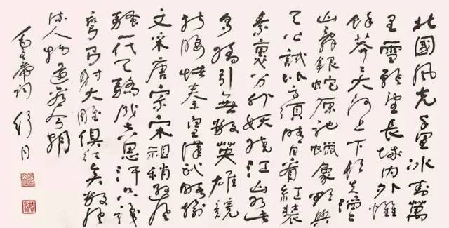 楷書中轉折有兩種:一種是方折;一種是圓折,這是風格上的區別。而行書很少用提按轉折比較繁的方折筆,而是隱含折意的圓轉。行書的圓轉與楷書的圓轉相比,速度要快,常常一帶而過,沒有楷書圓轉那樣略方的交角,常以渾圓的弧線出現,或者形成一個半環形,如米芾所書的“為”、“而”、“直”3字。行書中有些形似圓轉的轉折,卻有明顯的方折的翻筆,這實際上也是用方折法的快寫,雖為圓形而微微有棱角,如“皆”、“物”字。然而行書圓轉居多,是其一般的規律。由于書家的習性、風格的不同,其用筆也不同。因而王羲之的行書方折多些,顏真卿的行書圓轉多些,蘇軾的行書方折多些,米芾的行書圓轉多些。