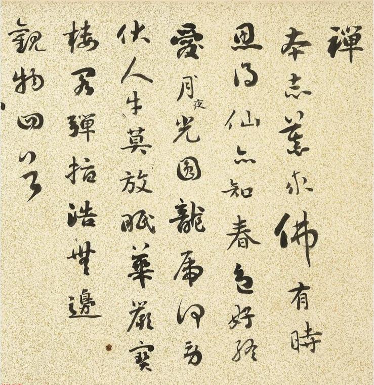 釋文:禪。本志慕求佛。有時思得仙。亦知春色好。終愛月(點去)夜光圓。龍虎何勞伏。人牛莫放眠。華嚴寶樓閣。彈指浩無邊。觀物四首。仙。鰲極鵬霤恣意逰。白雲滄海幾春秋。山川似昔人誰在。龍虎歸元鼎亦休。大抵有情終有恨??赡軣o欲竟無求。後天而老從渠說。好伴思明劫燼留。龍。乾象昭然大義彰。如人惟聖德惟陽。幽明出入神功大。雲雨施行帝道光。豈合天刑論赤黑。無端野戰因元黃。華嚴秘藏傳尊者。授記何年見法王。鬼。已判陰陽又轉輪。人還為鬼鬼為人。斷除瀆亂重黎正。和會幽明律呂神。成佛生天皆有路。降靈致祟不無因。形聲一氣非虛眇。竊意韓公語未眞。蝴蝶。有底前因只傷花。侵尋香色趁年華??v輸巧舌能言語。也勝分房?室家。風雨兩山仙化國。丹青幾筆夢生涯。伶俜婉孌秋光晚。可是情牽日月賒。戒殺。口腹區區到割烹。無端金鍼解飛鳴。祗應仁聖分三就。豈合蚩尤鑄五兵。生死環循終不了。怨親輪轉更難明。何時異類渾歸寂。大地全教草菓生。戒淫。艮維一氣震方來。斧鑿誰施混沌開。遂有絪縕為化音。便凝魂魄住胞胎。形神清渴成凡聖。緣業貞邪召褔災。癡絕於中分好醜。牽情縈想重輪迴。卵。幾許飛鳴攪太空。緫緣黃白判圓中。形將天地最初似。色與刀圭點化同。威鳳拙鳩誰得路。大鵬斥鷃各乘風。如何??啄知時節。也被蒙?笑二蟲。胎。妙住光嚴大法輪。胞中人是定中人。無端情識渾離覺。遂使虛空頓起塵。吸取靈朙藏十月。鍊銷濁垢度千春。仙成正較凡流好。大患從知尚有身。濕。二氣相交?又寒。氤氳沮洳注微瀾。溷蟲豈解賦形穢。禈虱惟知生處寬。下劣脩羅潛海底。輕微蚊蚋上枝端。欲求解脫知何日。直待嵐風大地乾?;T煳餆o心範萬形。陰陽烝變幻羣靈。螟蛉子負是何理。程馬人生真不經。冬夏二時蟲又草。蜣蟬同體瞀還醒。鵠烏松棘憑誰問。聞說軒轅也聽瑩(點去)熒。劉墉謹稿。
