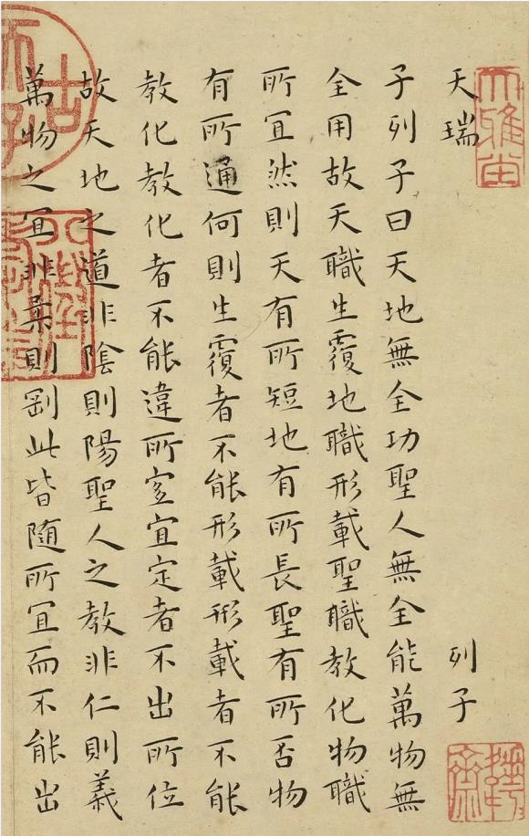釋文:天瑞。列子。子列子曰。天地無全功。聖人無全能。萬物無全用。故天職生覆。地職形載。聖職教化。物職所宜。然則天有所短。地有所長。聖有所否。物有所通。何則。生覆者不能形載。形載者不能教化。教化者不能違所宜。宜定者不出所位。故天地之道......世事苦樂。古猶今也。變易治亂。古猶今也。既聞之矣。既見之矣。既更之矣。百年猶厭其多。況久生之苦也乎。孟孫隘曰。若然。速亡愈於久生。則踐鋒刃。入湯火。得所志矣。楊子曰。不然。既生。則廢而任之。究其所欲。以俟于死。將死則廢而任之。究其所之。以放於盡。無不廢。無不任。何遽遟速於其間乎。右書列子。寵。