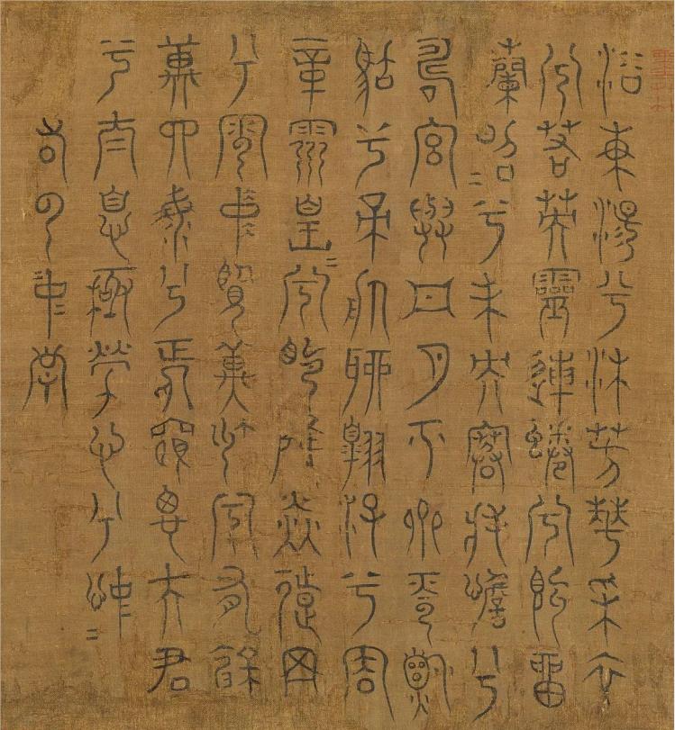 米芾篆書《九歌》,來源:宋李公麟九歌圖米芾書辭卷,絹本,臺北故宮博物院藏。