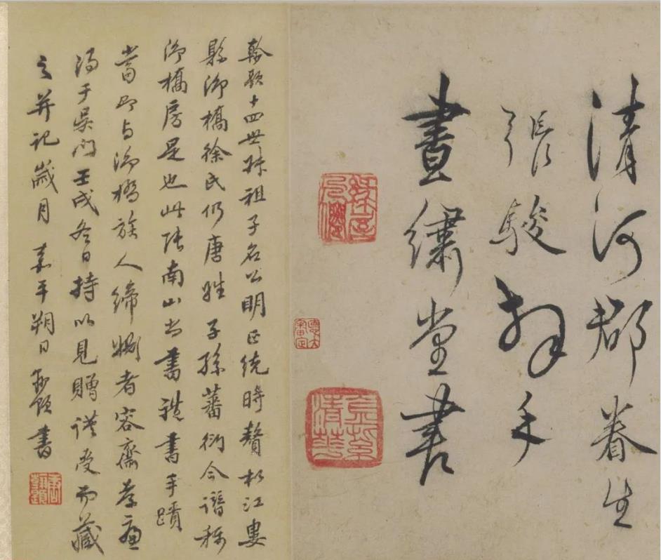 張駿生卒年未詳,字天駿,號南山。明松江府華亭縣人,景泰四年(1453年)舉人。官至禮部尚書。書法時以狂草體著稱,與張弼齊名,時號“二張”。喜用長鋒硬毫作字,瘦勁有力,于圓活妍潤中顯示挺拔瀟灑的風格。