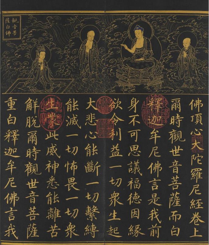 明人金字楷書《佛頂心大陀羅尼經》冊,大明宣德四年(1429)九月二十四日制,臺北故宮博物院藏。