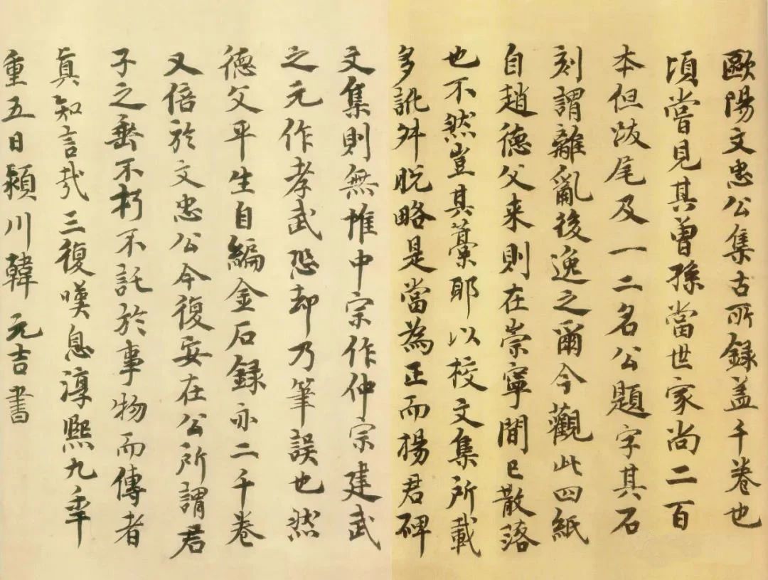 鮮有墨跡傳世,唯歐陽修《集古錄跋》尾有韓元吉楷書題跋百余字,端雅從容,有蔡君謨余緒。
