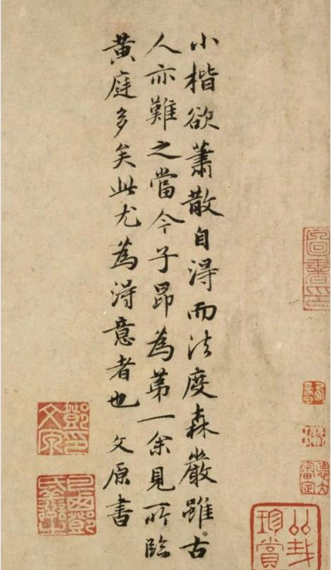 釋文:小楷欲蕭散自得而法度森嚴,雖古人亦難之,當今子昂為第一。余見所臨黃庭多矣,此尤為得意者也。文原書。
