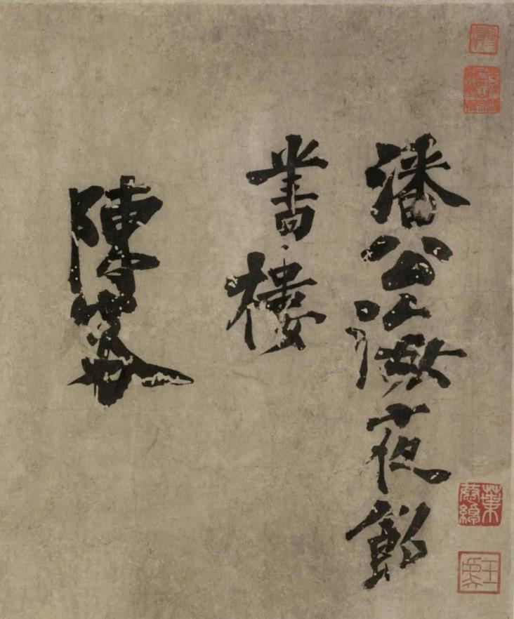釋文:潘公海夜飲書樓。陳容。夫君美無度,視世一鼠肝?!醴蚴б鈺r(shí),不知樞在環(huán)。雲(yún)氣上罍樽,渠作瓦缶看。八暝同眼精,我眼雙劍寒。潘江字□海,陸海無波瀾。文章有戰(zhàn)勝,此道難躋攀。向來聞歌商,政以靜體觀。收心學(xué)潛聖,吾身重丘山。豈必獵衆(zhòng)智,茫茫芡走盤。誡身與教子,戶內(nèi)天壤寬。苜蓿上朝盤,道人齋入關(guān)。土田非蒺藜,莫問歲事艱。夫君不長(zhǎng)貧,身在世轉(zhuǎn)難。戊戌前四月書。公海執(zhí)此爲(wèi)曆。此紙得之臨川故人家,借此言久交耳。詩(shī)不足道。