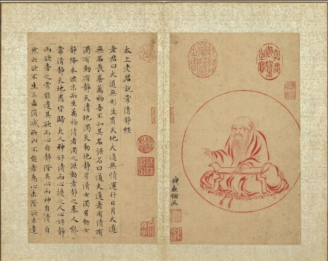 本冊(cè)前有錢榖朱畫〈圓光老子像〉,後有周天球嘉靖三十一(1552)年跋,此二人皆遊文氏門下,《明史》並舉錢榖畫與周天球書「皆繼徵明表吳中者也」。