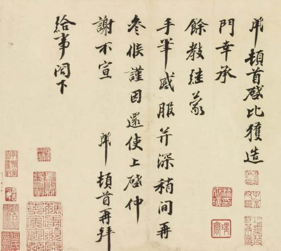 釋文: 肇奉別。行復歲暮。傾鄉實倍常情。但公私紛紛。為問不數。甚自愧也。別紙丁寧。豈惟益友忠告之誼。亦出于憂國懇懇之誠。反復數四。不勝感嘆。衰拙于此。豈能恝然。但再三則瀆。終恐無補爾。余非會面。不究所懷。遠書萬一流落。不可不慮也。海陵過此相見。誠如所諭。廣陵之傳,乃邸吏誤報。乘流得坎。任其自然。未嘗以此為念。上下匱乏。所在皆爾。非獨彼也。歲晚益寒。強食自愛為祝。肇又上。